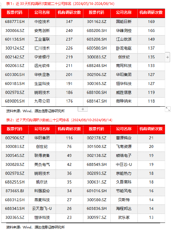 近30天机构调研数前二十的热门公司有中控手艺、安克创新和工业富联等,近7天机构调研数前二十的热门公司有华阳集团、创世纪和联得装备等。上述公司中机构评级派别大于或等于10家的公司共计有19家。19家公司中2023年事迹阐扬较佳的公司有(2023年归母净利润卓绝2023年Wind一致预期):忻悦家、中控手艺、九号公司、威胜信息、微导纳米等。19家公司中2024年一季度事迹较佳的公司有:强人电气、顺络电子、中控手艺、工业富联、生益科技、九号公司、南网科技、华阳集团等。