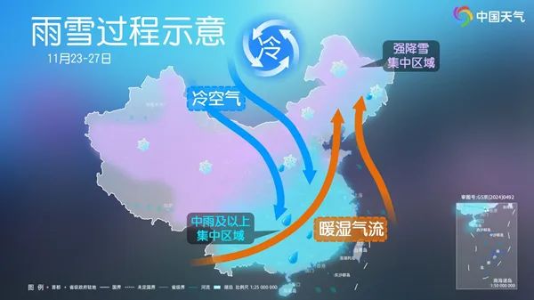 改日五天,雨雪将自西向东发展。其中,光芒天雨雪范畴较大,西北、华北等地部分地区将现雨转雨夹雪或雪,降水相态复杂,甘肃中东部、内蒙古中东部局地有大雪;西南地区东部、江南西部部分地区有中到大雨。25日至26日降雪较强,内蒙古、黑龙江等局地有大暴雪。27日,降雪强度消弱,主要影响东北等地部分地区。